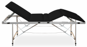 Стол имеет четыре секции с возможностью регулировки их положения. Собственный вес изделия равен всего 19 килограмм, а выдерживать стол может нагрузку до 200 килограмм. Массажный стол обладает оптимальными габаритами: 700 на 1900 мм, что обеспечивает комфортное положение клиента во время процедур. Высота складной кушетки для массажа и косметологических услуг 750 мм. У данной модели есть возможность фиксировать спинку в 10-ти разных положениях. Материалом для обивки стола служит искусственная кожа. Она отличается большим запасом прочности, не вызывает аллергии или тактильного дискомфорта. Кожзам качества люкс не теряет своей формы, не портится от механических нагрузок или попадания влаги. В качестве наполнителя для мягкой части используется плотный поролон. Он не теряет своей формы, оказывает необходимую поддержку в течение всей процедуры.