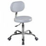 Стул круглый со спинкой на хромированной стальной раме в форме пятилучия, оснащенный колесами и регулировкой высоты, при помощи газ-лифта.
