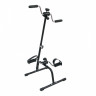 Велотренажер двойной DFC B812 dual bike Велотренажер DFC B812 dual bike предназначен для домашнего использования. Его основное назначение — реабилитация после операций и травм, тренировки для пожилых и людей с ограниченными физическими возможностями. Новая модель велотренажёра поставляется в комплекте с регулируемым ремешком длиной 74 см. Он нужен для предотвращения скольжения тренажёра во время занятий. Особенности тренажёра Дизайн Корпус выполнен в классическом чёрном цвете, который дополняют яркие голубые вставки. Система нагрузки Трубочная система регулируется вручную при помощи рукоятей на педальном блоке и блоке руля. Для увеличения нагрузки необходимо поворачивать рукоятку по часовой стрелке, для снижения нагрузки — против часовой стрелки. Функциональность Заниматься на тренажёре можно стоя или сидя, что оптимально для занятий сидячим людям. Максимально допустимый вес пользователя — 100 кг. Массаж В основании тренажёра предусмотрены ролики с пупырчатой поверхностью для массажа ног. Такими же накладками оснащены рукоятки. Дисплей Монохромный дисплей отображает время занятия, число шагов, скорость, калории. В комплект входит батарейка 1,5 В (необходима для работы дисплея).